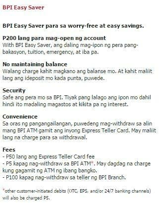 - Bpi Savings – NO maintaining balance required