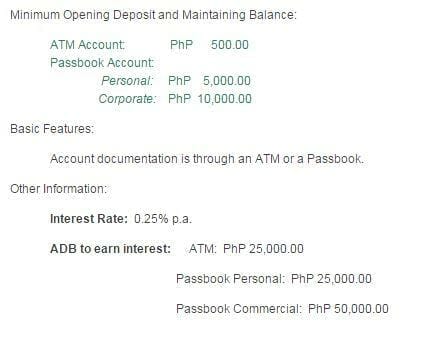 Much like RCBC’s savings account, Landbank’s ATM savings account has a P500 initial deposit and maintaining balance requirement. However, this account also allows you to earn interest at 0.25% per annum with a required daily balance of P500.