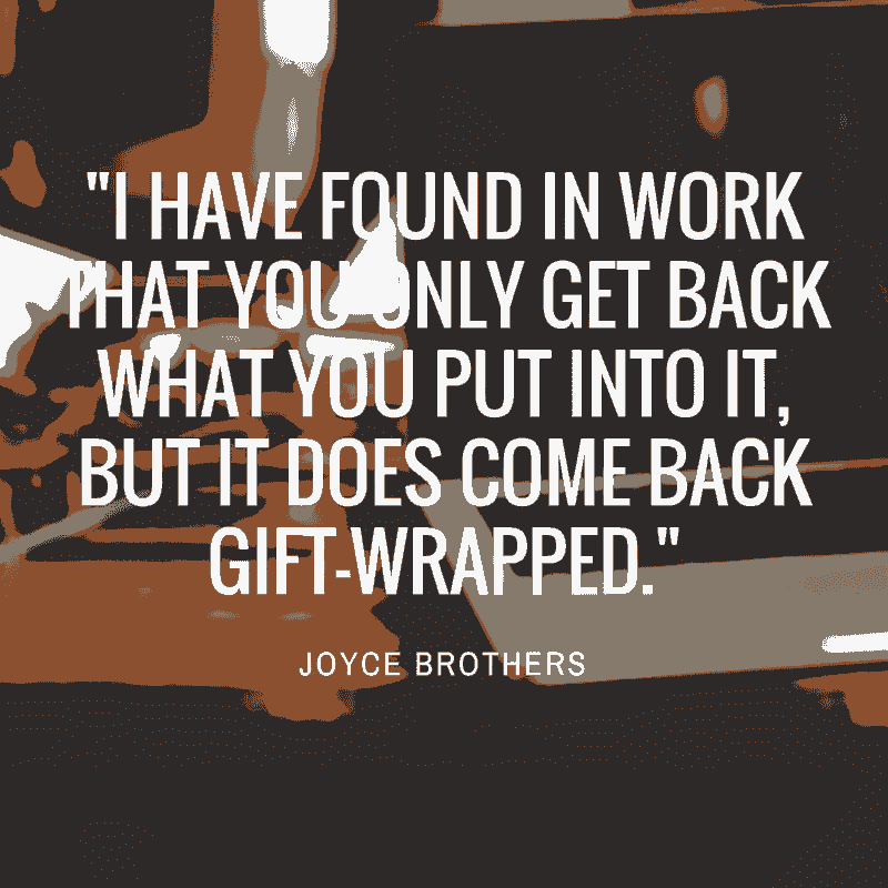 “I have found in work that you only get back what you put into it, but it does come back gift-wrapped.” – Joyce Brothers