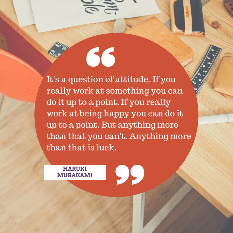 “It is a question of attitude. If you can really work at something you can do it up to a point, If you really work at being happy you can do it up to a point. But anything more than that you can’t. Anything more than that is luck.” – Haruki Murakami