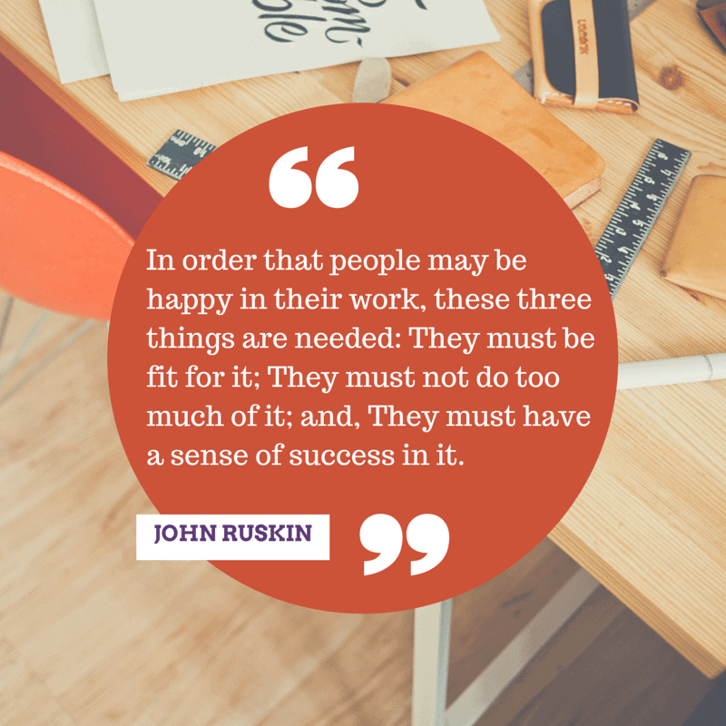 “In order that people may be happy in their work, these three things are needed: They must be fit for it; They must not do too much of it; and, They must have a sense of success in it.” – John Ruskin