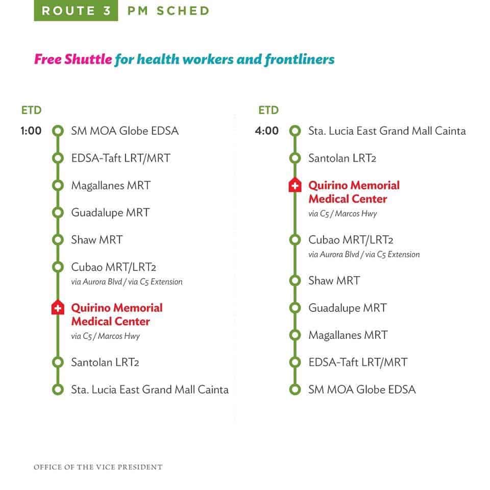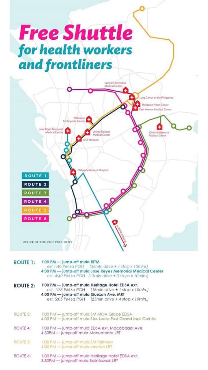 [A] Sa lahat ng mga nag-aabang: Narito ang impormasyon tungkol sa routes ng free shuttle service ng Office ni VP Leni Robredo for health workers bukas, March 18.