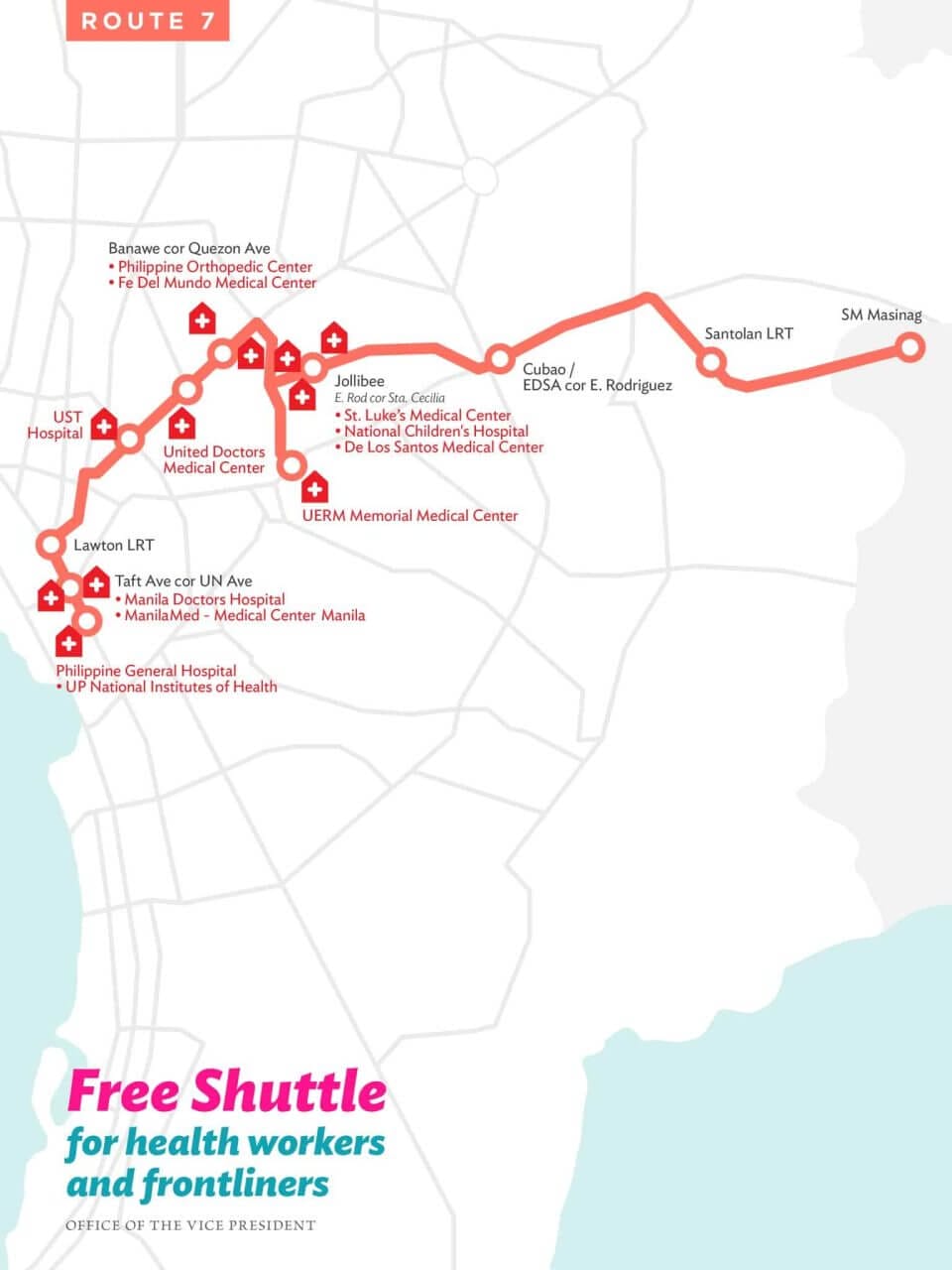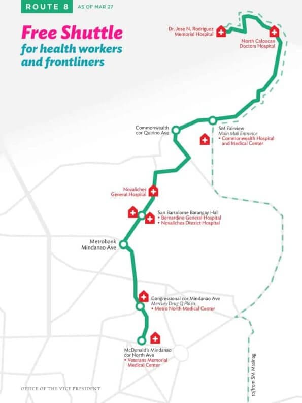 The Office of the Vice President announced on her official twitter account that they will provide a free shuttle service for our health workers and front liners who are putting themselves aside to care for everyone affected by this coronavirus disease (COVID-19) pandemic.