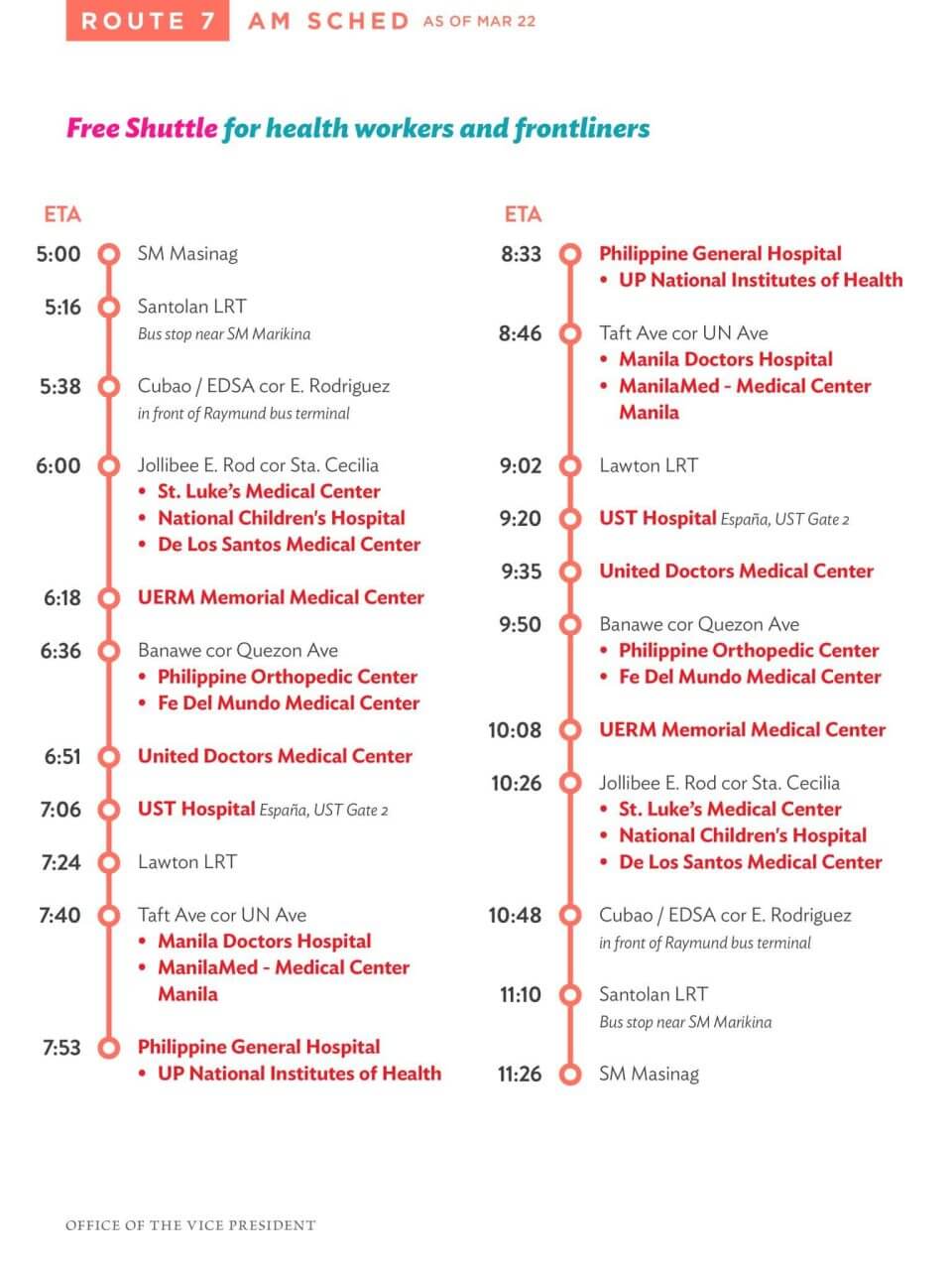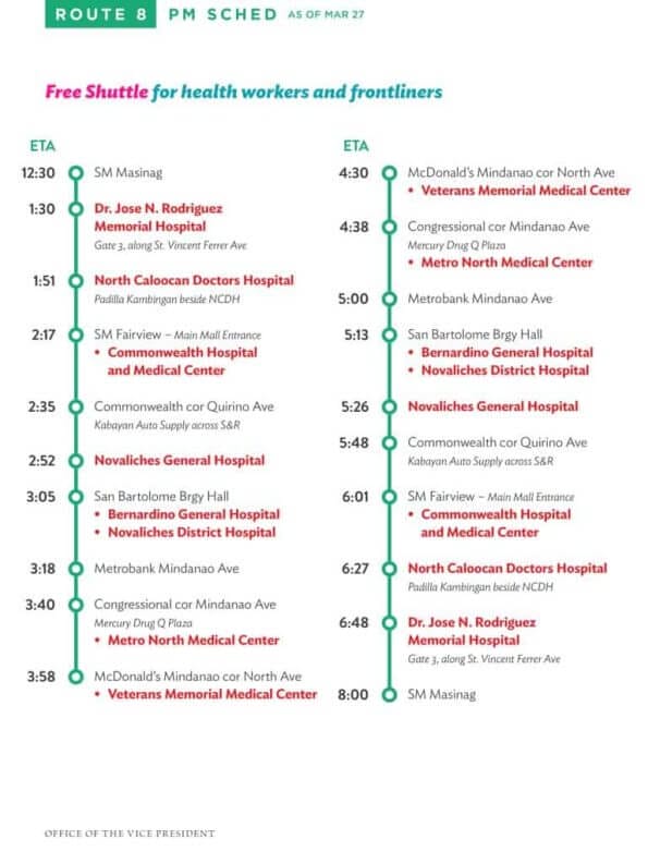 [A] Sa lahat ng mga nag-aabang: Narito ang impormasyon tungkol sa routes ng free shuttle service ng Office ni VP Leni Robredo for health workers bukas, March 18.