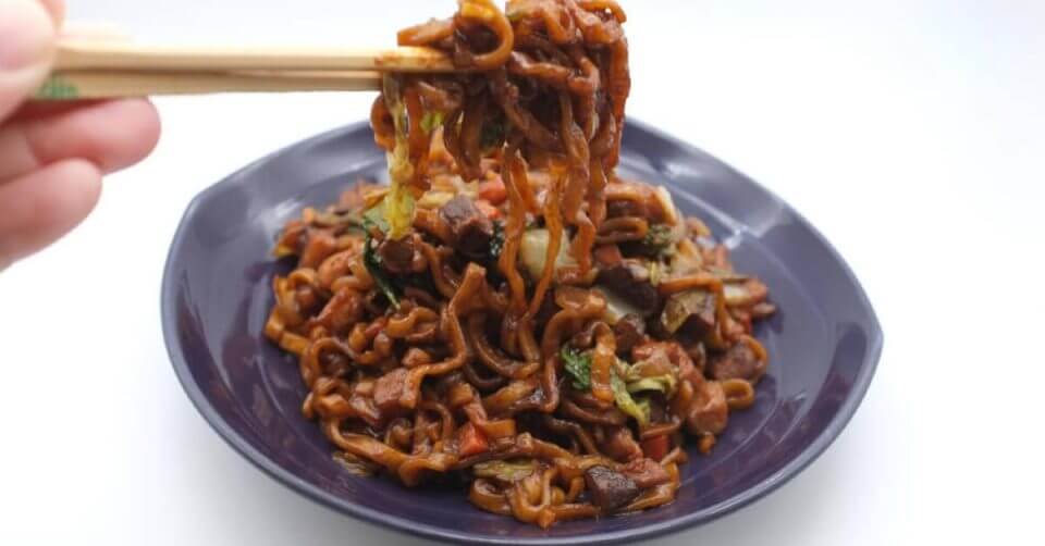 Jajangmyeon noodles are made by hand and have a hearty flavor. They contain large amounts of vegetables such as carrots, cabbage, zucchini, mushrooms, spinach, onions and peppers.