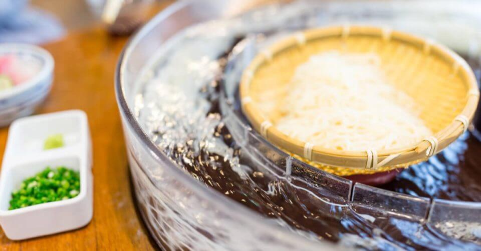 Naengmyeon is a cold buckwheat noodle dish. There are two main varieties: one uses only cold noodles while the other also mixes in vegetables and sometimes meat.