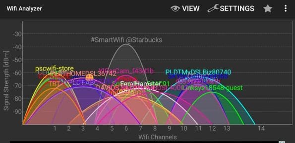 To give you a clearer picture of what I mean about competing frequencies, take a look at these images – I used Wifi Analyzer on Android available for download here