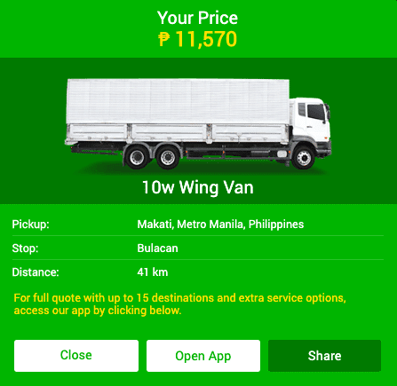 Single Delivery: Book anywhere in Makati, Taguig, QC or Pasig and we’ll deliver it in 90 minutes or less within Metro Manila