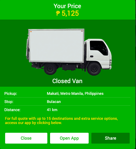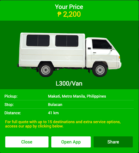 Price: Base fare P2,000.00 + P50.00/km