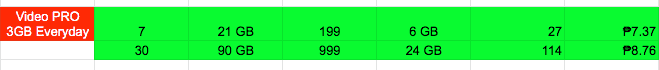 | Video 1GB Everyday | 3 | 3 GB | 50 | Unli Text | 3 | ?16.67 |