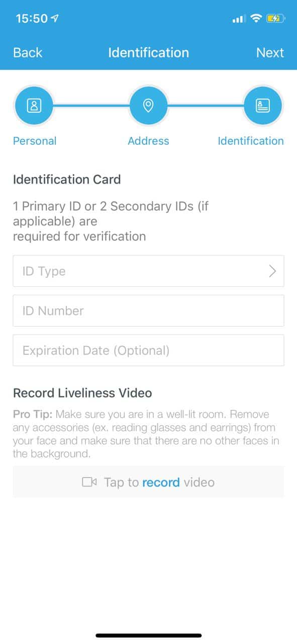- Lastly, perform the Identification step. You will be asked to upload a valid ID (requirements will be shown when you click ID Type). And a Liveliness video (selfie) as last step to proceed.