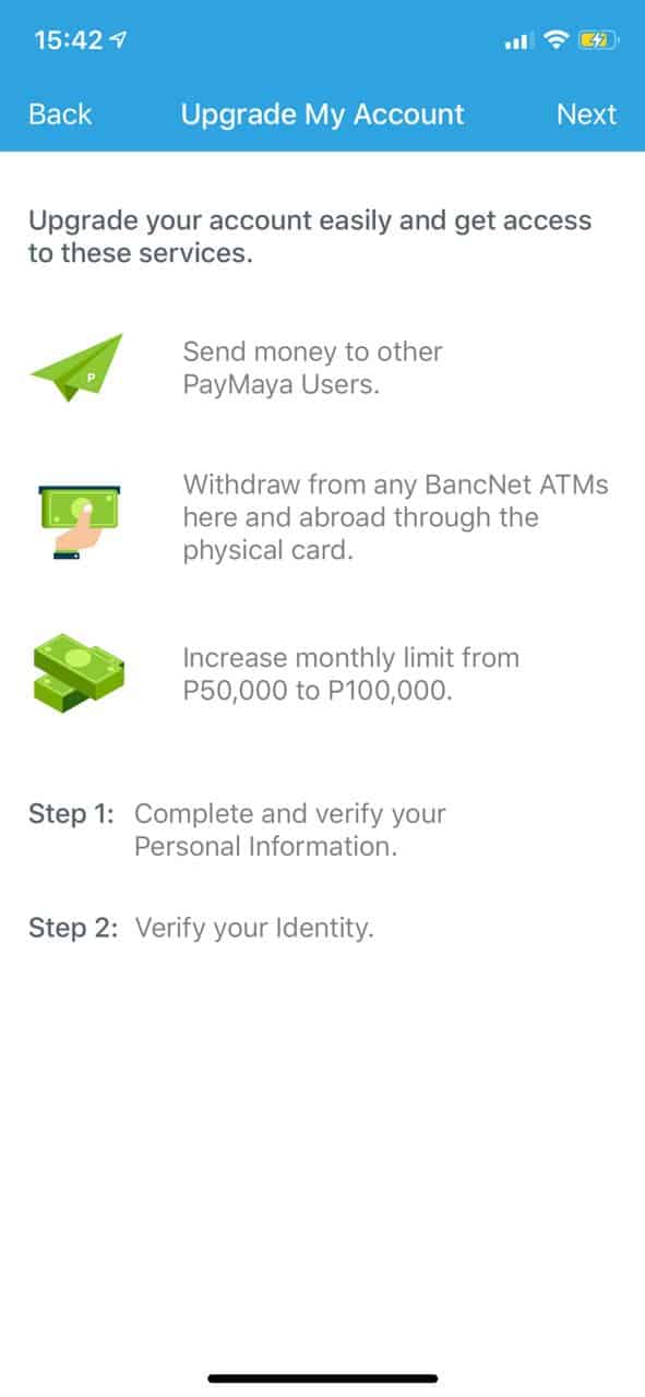Follow these steps to upgrade/activate your PayMaya wallet: