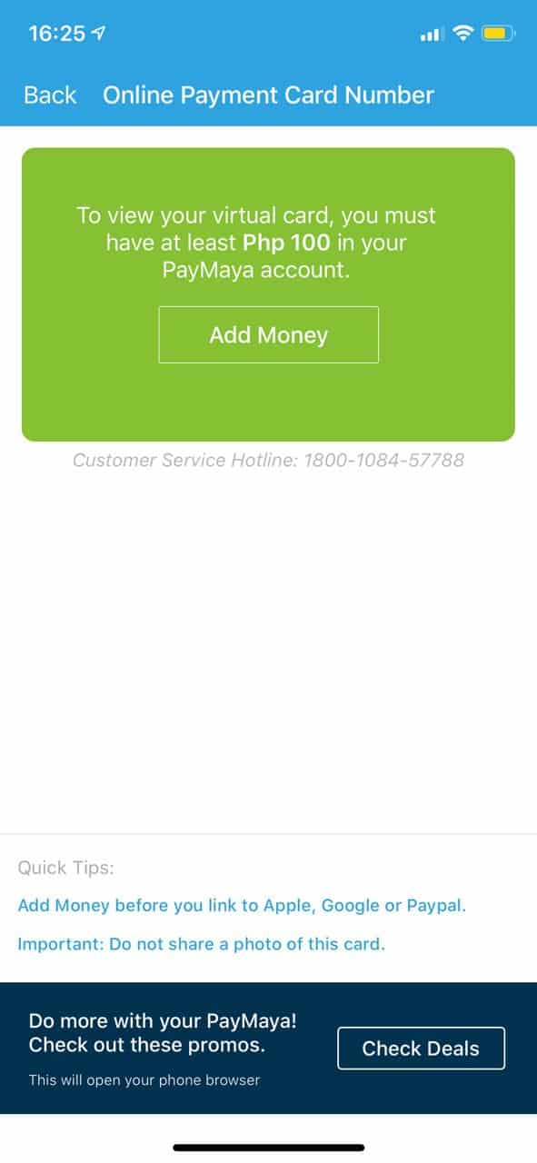 - Go back to My Cards and click on Online Payment Card Number. You will need to load up at least P100.00 to your wallet via Add Money options mentioned above.