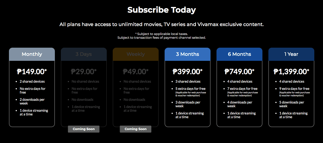 - Choose Vivamax Subscription period – Monthly , 3 Months, 6 Months and 1 Year plans as seen below then subscribe on site.
