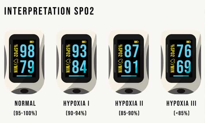 When you aren’t getting enough oxygen, you’ll experience a host of symptoms including: rapid breathing, shortness of breath, fast heart rate, coughing or wheezing, sweating, confusion, and changes in the color of my skin. Seek immediate medical attention if I experience any of these symptoms.