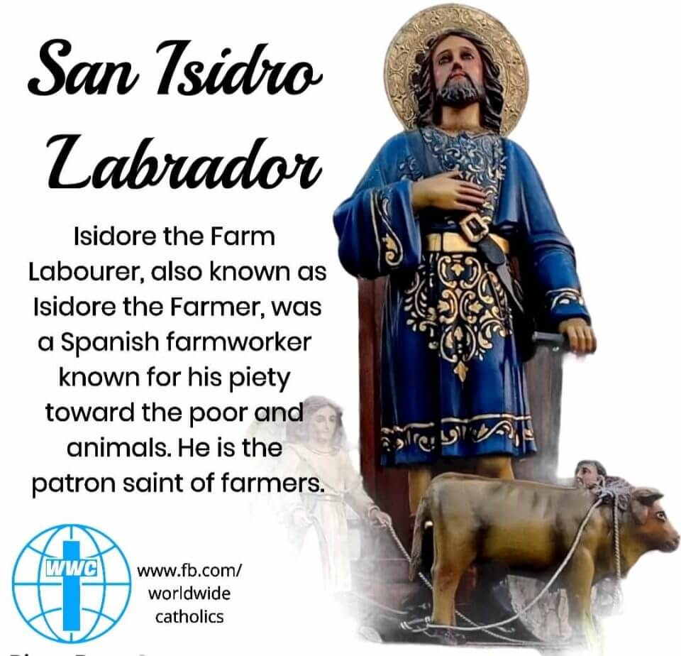 The feast day of San Isadore Labrador is celebrated on May 15th. He is the Patron Saint of Farmers, Peasants, Agricultural Workers, and Madrid, Spain. On this day, we pray for peace, prosperity, and abundance. We ask our Lord Jesus Christ, Our Blessed Mother Mary, and all the Saints to bless us.